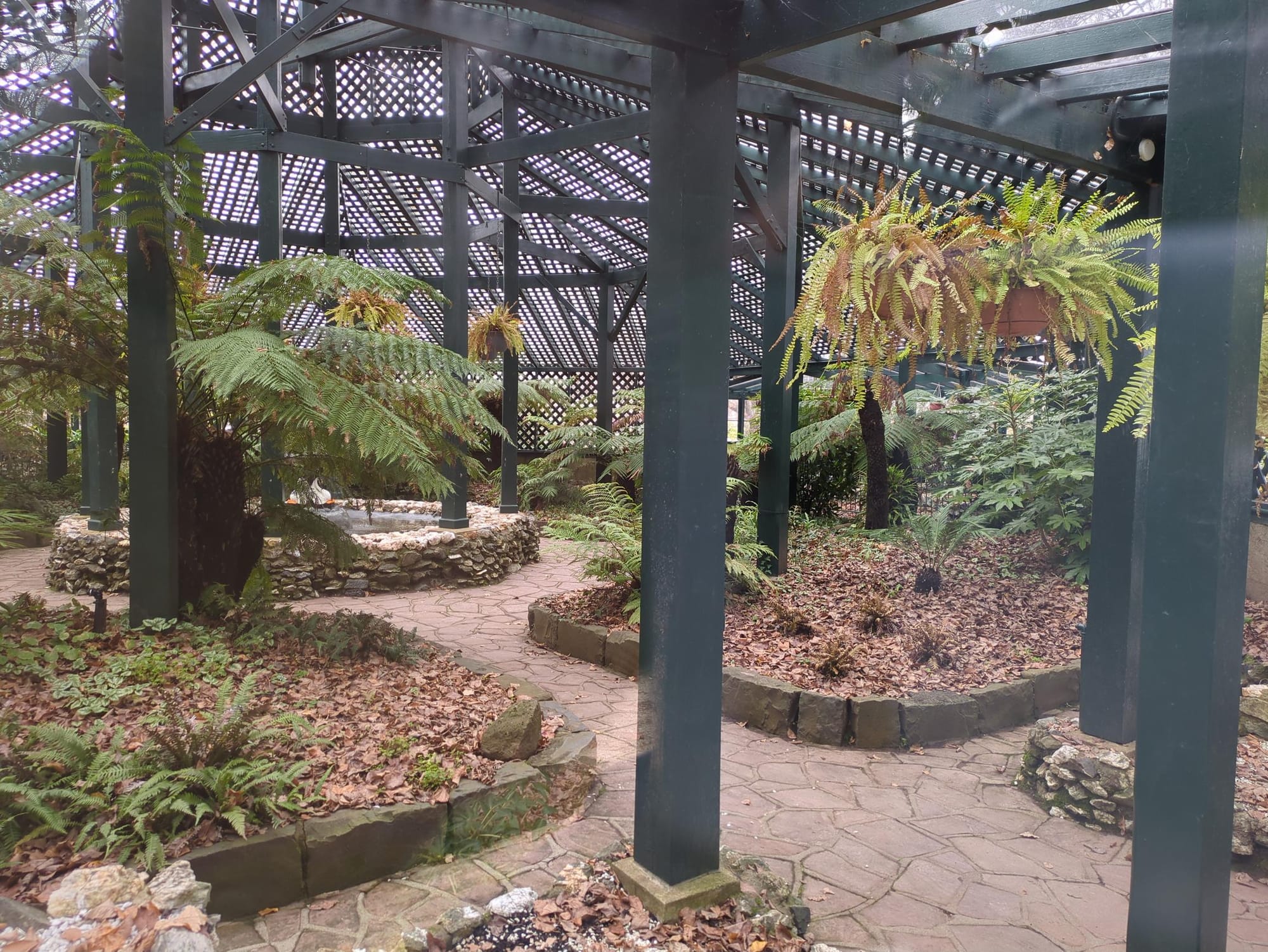 Clockwise from top-left: A nice little pond within; a bridge going over said pond; indoor garden that was closed; looking through the garden window; another angle through the window; quaint section of the garden