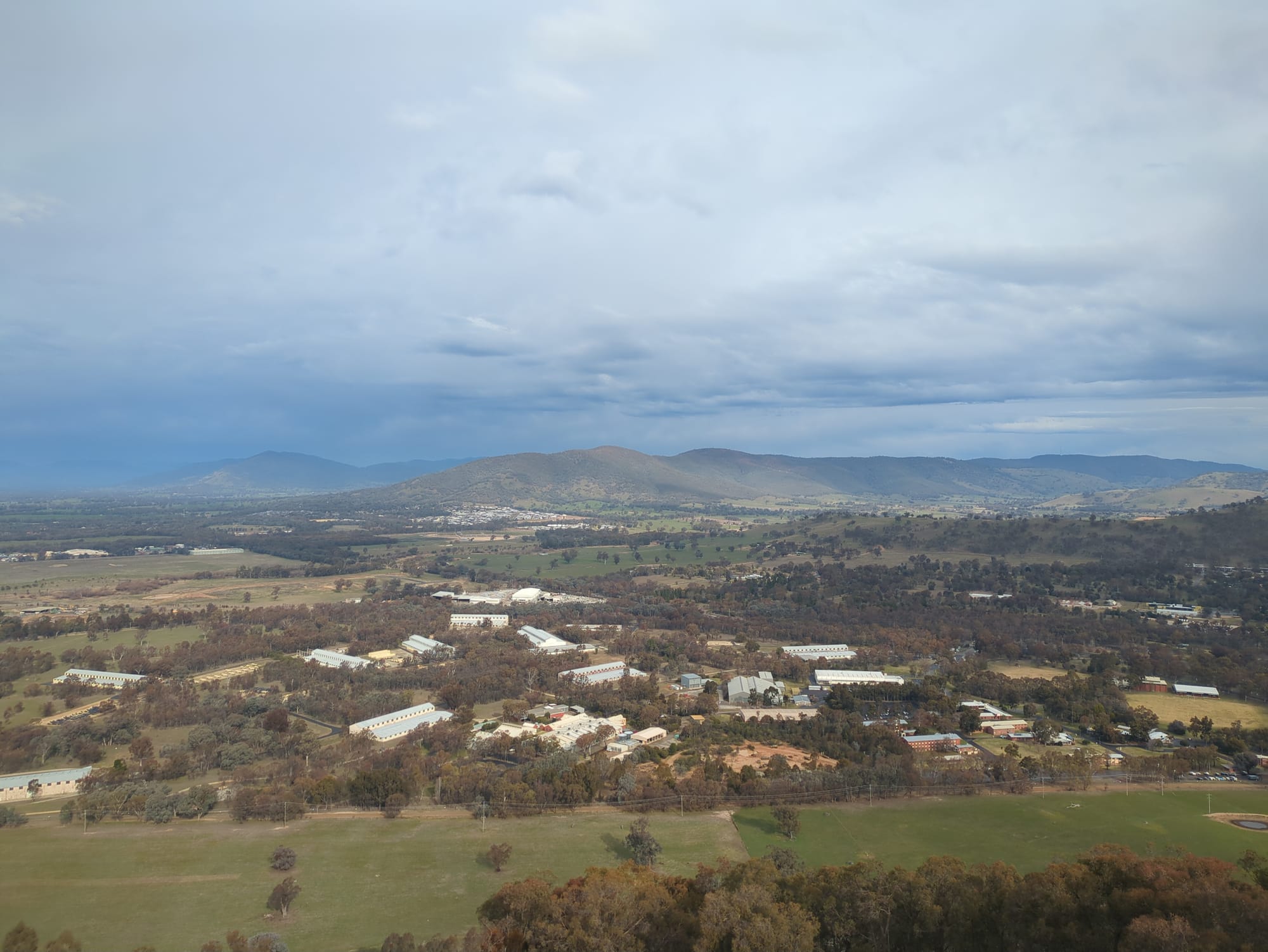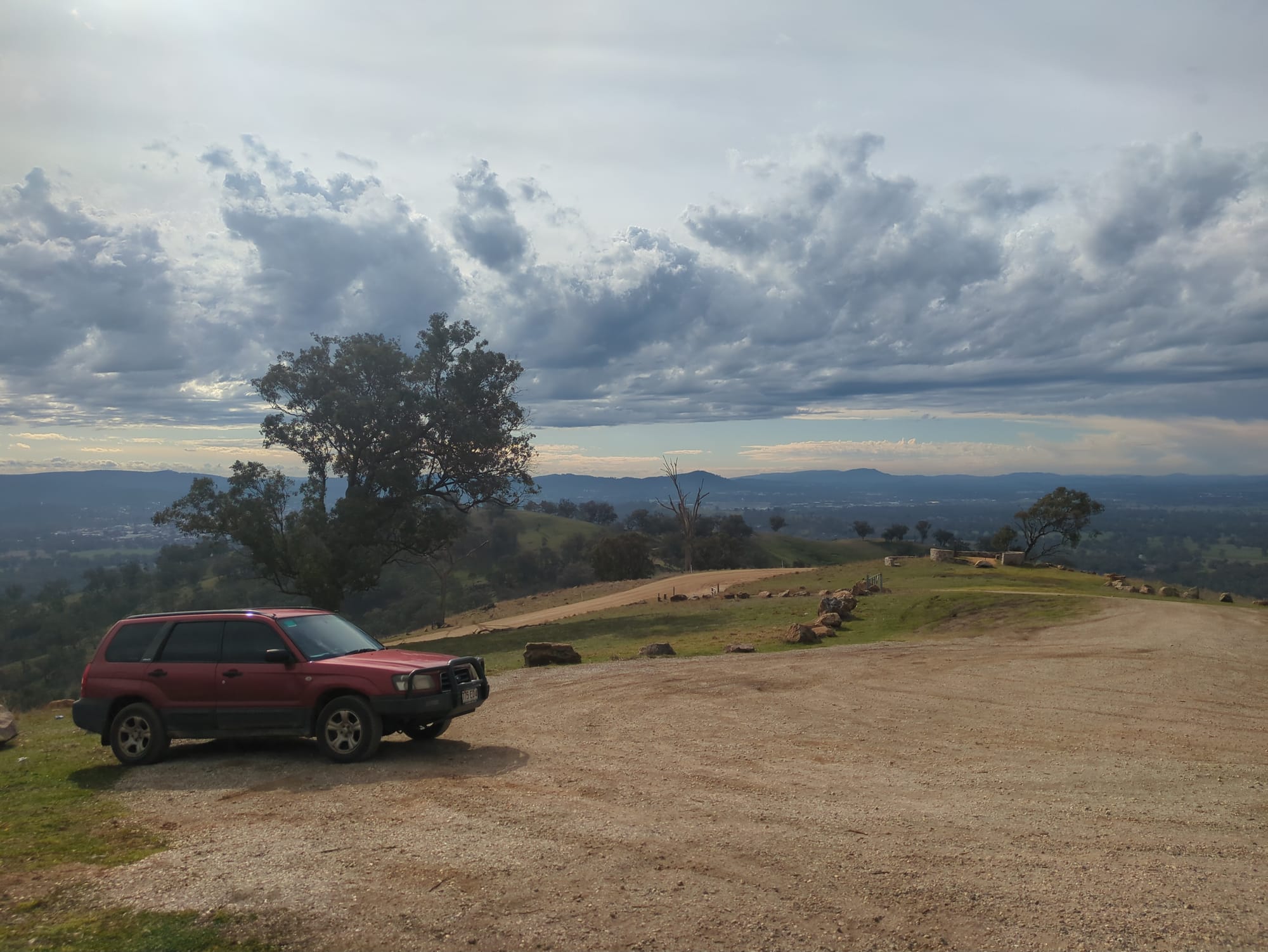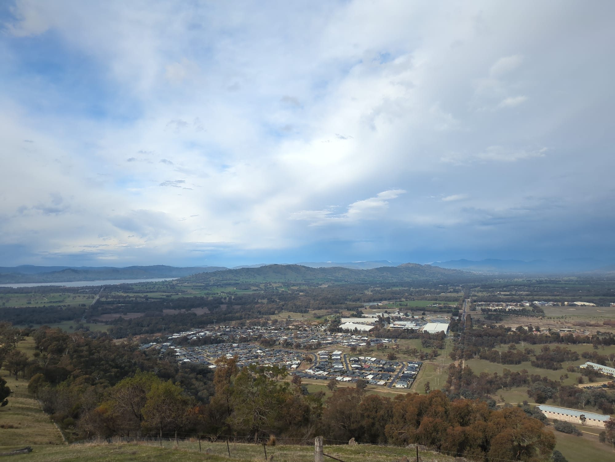 I really wanted to go out and start exploring the local area and finding nice mountains, so I went up a pretty sketchy gravel road to the lookout at Huon Hill. You definitely got a nice vantage point overlooking Wodonga and the Murray River.